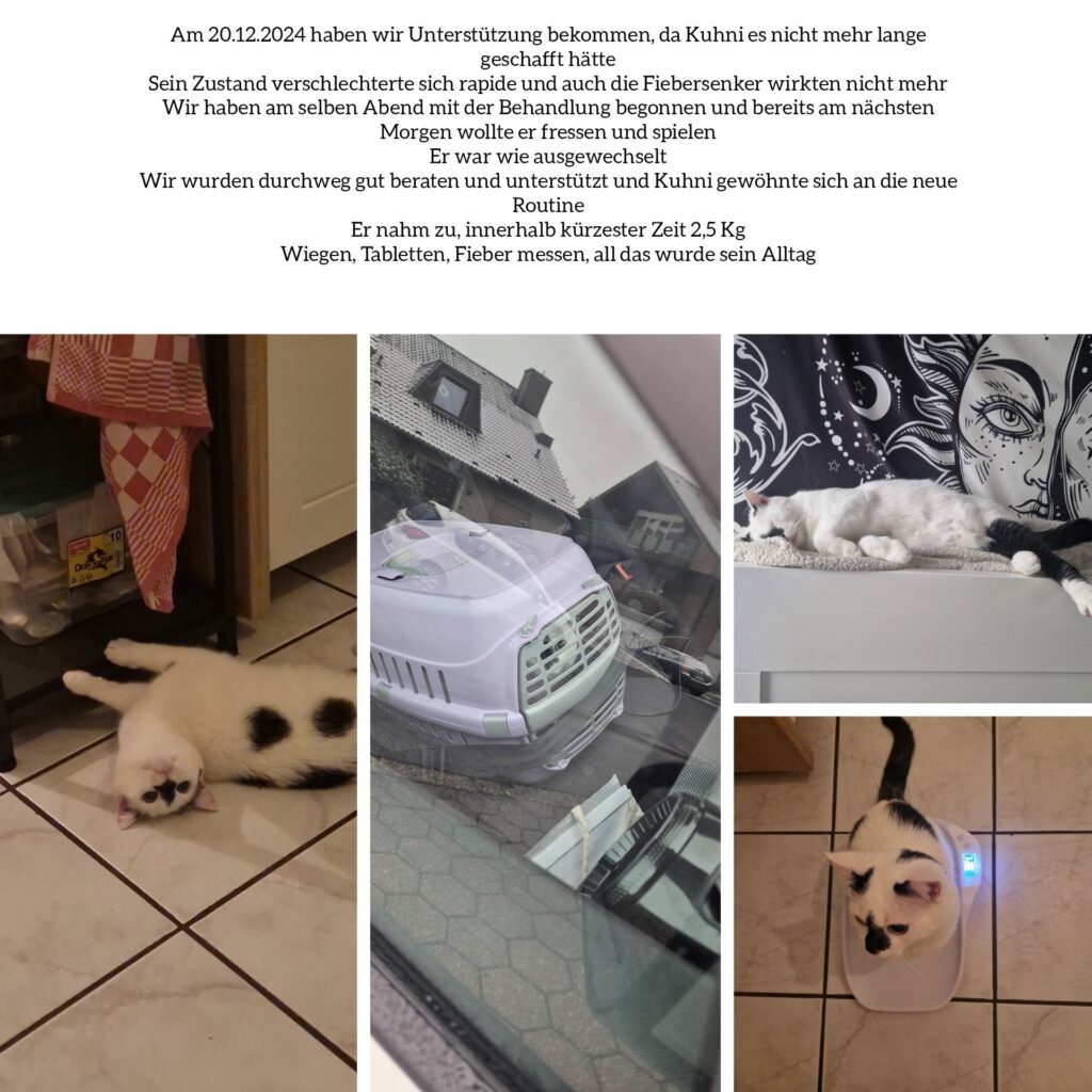 Nach einer weiteren Wartezeit und abschließenden Kontrolluntersuchungen gab es Gewissheit: Kuhni blieb gesund und ist bis heute FIP-frei! Wir haben seinen Weg aufmerksam begleitet und mitgefühlt, jeden Schritt dieser bewegenden Reise miterlebt – und freuen uns nun von Herzen über sein Happy End. ![]()