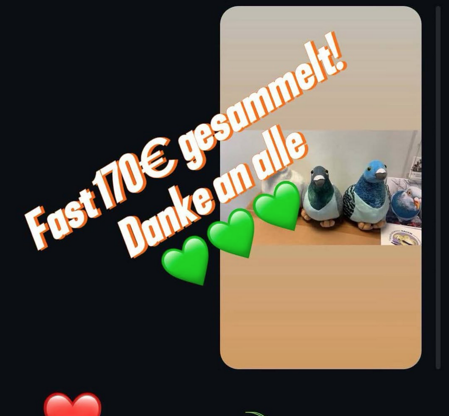 Marvin Leif von Grow-Leif hat für uns Stofftauben gegen Spende angeboten und zusätzlich noch Spenden für uns gesammelt![]()