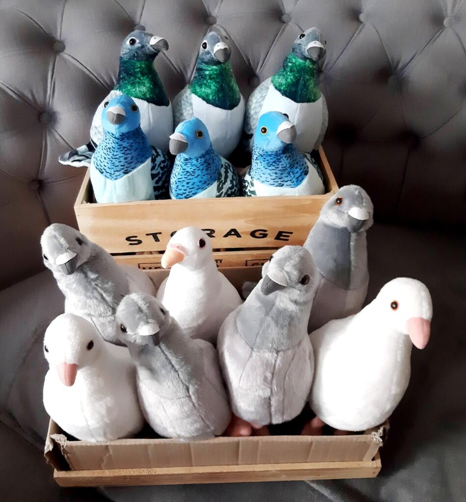 Die einzigen Tauben, die sich bei uns gerne vermehren dürfen und gegen eine Spende ab 10 Euro in ihr neues Zuhause fliegen können, sind unsere bezaubernden Stofftauben