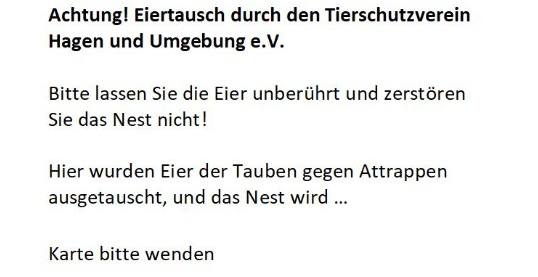 Wenn Sie in oder neben Taubennestern diese Kärtchen finden, einfach alles so lassen wie es ist und über den QR-Code kurz informieren. Probieren Sie es einfach aus und lassen Sie die Nester so wie sie sind.