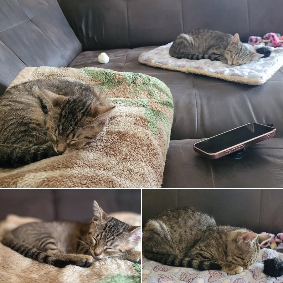 Nach diesem Abenteuer ließen sich die beiden Brüder auf dem Sofa nieder und gönnten sich erst einmal ein ausgiebiges Nickerchen. Es ist immer wieder beeindruckend zu beobachten, wie schnell die Kleinen sich eingewöhnen, alles neugierig inspizieren, ihre Mahlzeit genießen und dann tiefenentspannt an ihrem neuen Lieblingsplatz einschlafen.