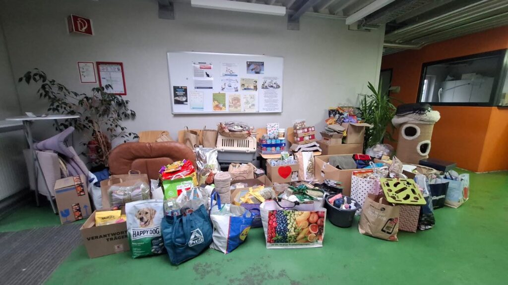Wie jedes Jahr war es wieder ein wunderschönes Fest und eine tolle Bescherung für die Tiere. Es wurden zahlreiche Sachspenden abgegeben: Futter, Spielzeug, Kissen und vieles mehr, worüber wir uns sehr gefreut haben.
