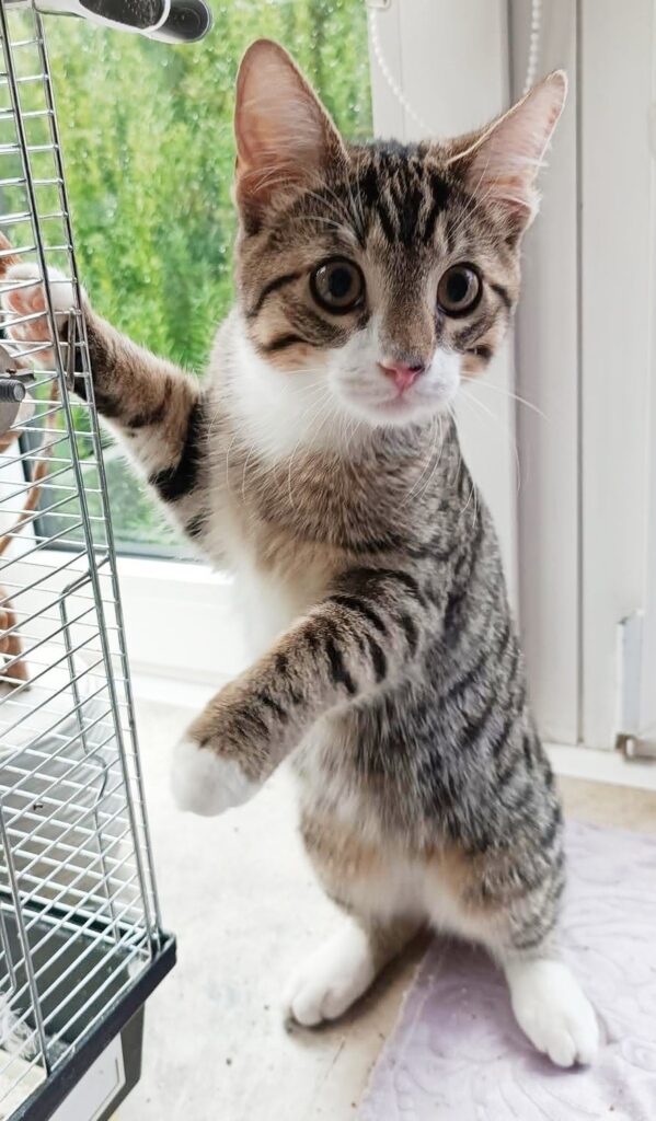 Zwei, die sich auf der Pflegestelle kennen und lieben gelernt haben. Micky grau/weiß und Robin rot.