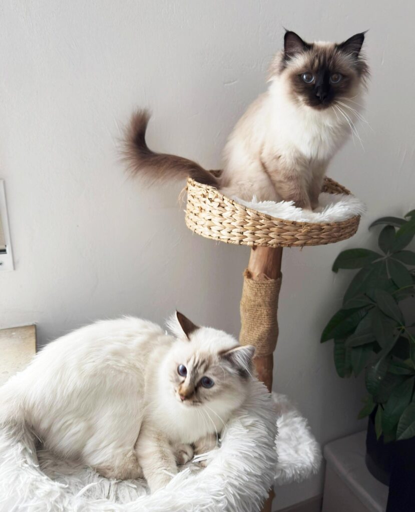 Die beiden heiligen Birma können aufgrund einer Krankheit leider nicht in ihrem bisherigen Zuhause bleiben.
